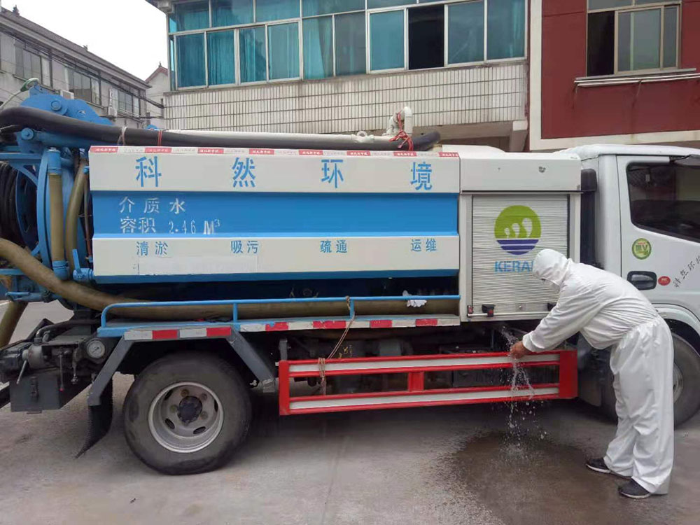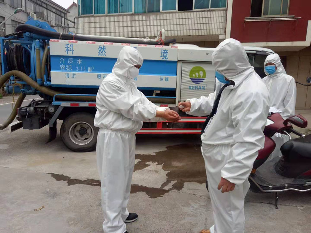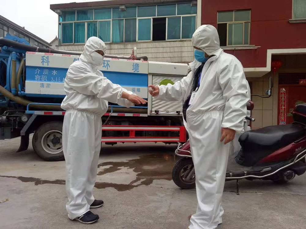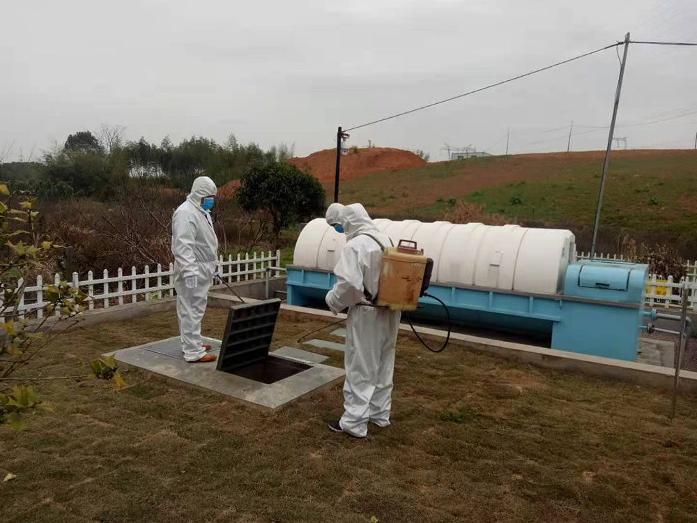 科然環境運維組員工為號召國家防控疫情政策,對各個終端和管網的污水池進行全面的清掏、消殺工作。